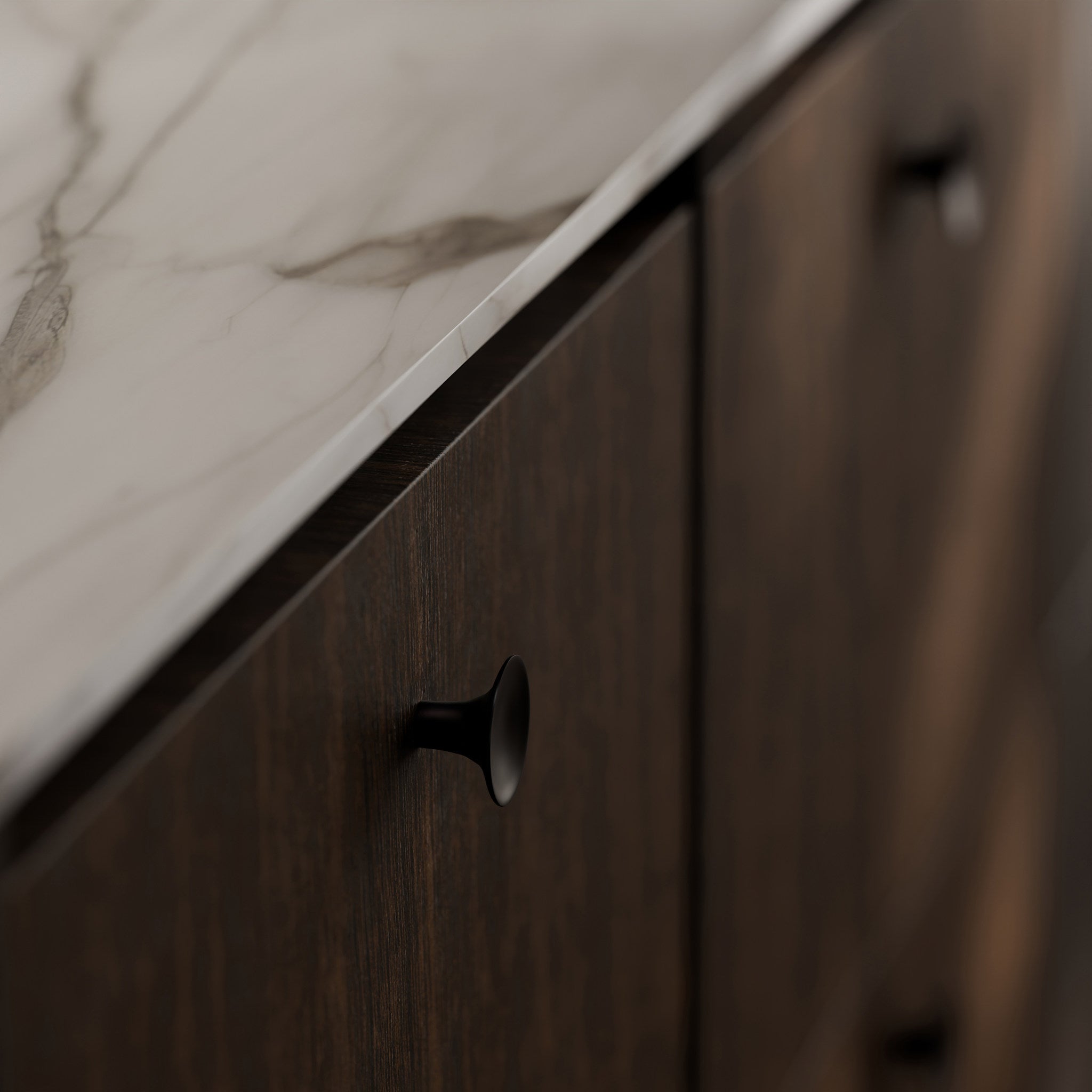 One recognizes various musical instruments when looking at the playful Hi-Hat knobs, from a classical cymbal to the bell of swinging brass instruments. The knobs are made from iron and comes in a plated brass, burned black, brushed steel or plated bronze colour, adding warmth and elegance to the wall. Each knob comes with two different screws for mounting directly in a wall or to mount on a kitchen or furniture front.
