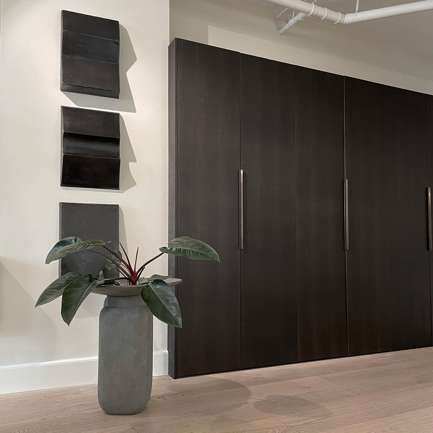 The Sculpt Art collection is a series of reliefs for hanging on the wall as pure artistic intentions. The sculptural pieces pull their inspiration from brutalist architecture details, design history and concrete as a surface and material in American Minimalist art of the 1960s. Each piece is handmade from a sustainable concrete-like material of recycled newspapers, sand and chalk powder, combining artistic work with sustainable production methods. The Sculpt Wall series are available in three different shapes and can easily be hung on a wall with screws and brackets on the backside.