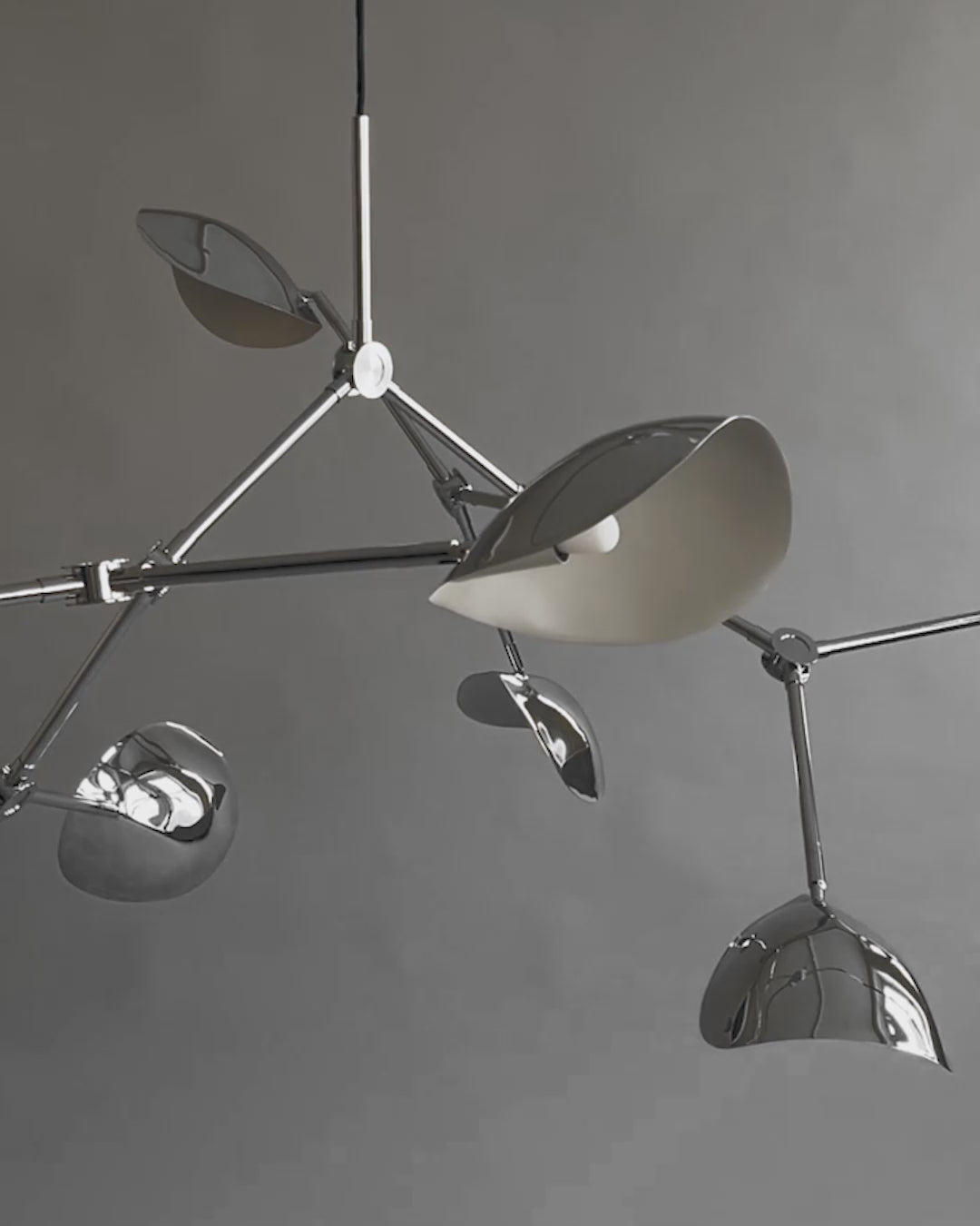 Inspired by the graceful movement of the stingray, the Stingray Chandelier is a harmonious fusion of soft curves and striking lines. The floating elegance of the Stingray lampshade takes centre stage, its sculptural form creating a dynamic interplay of light and shadow. As the perspective shifts, the lampshade subtly conceals and reveals the light source, offering a mesmerizing and ever-changing illumination experience.