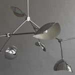 Finished in polished Chrome, the chandelier reflects its surroundings with mirror-like clarity, adding brilliance and sophistication to any interior. Suspended from an adjustable arm, the Stingray lampshade hovers in perfect equilibrium, counterpoised by a delicate sphere—an artistic expression of contrast and weightlessness.