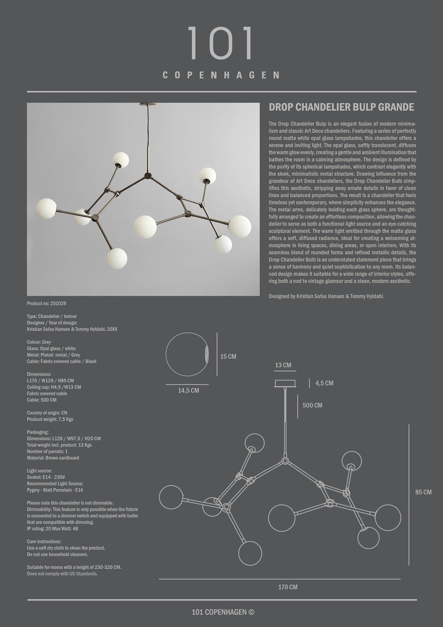 101 Copenhagen - Drop Chandelier Bulp, Grande - Grey (5m) - Chandelier