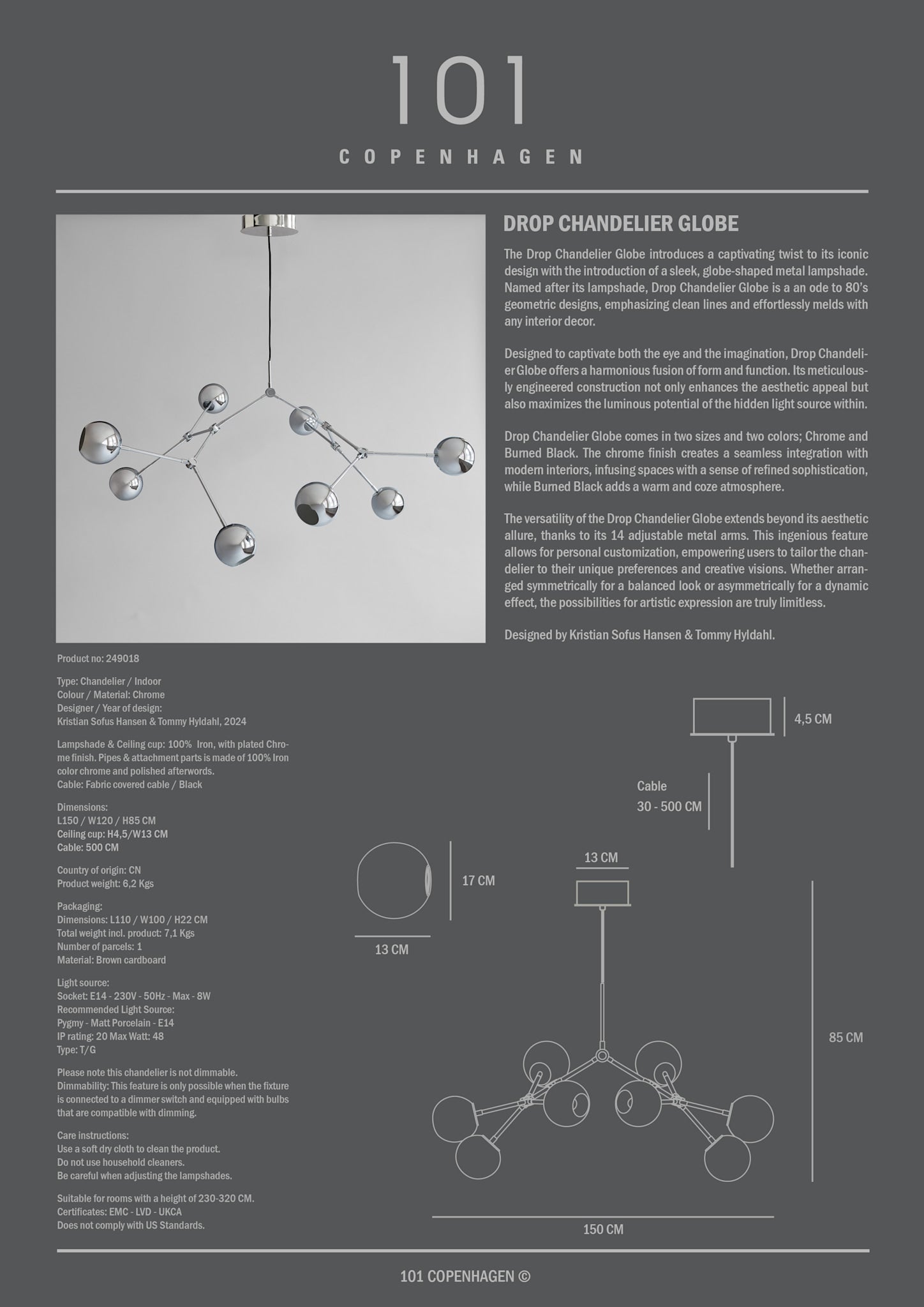 101 Copenhagen - Drop Chandelier Globe - Chrome (5m) - Chandelier