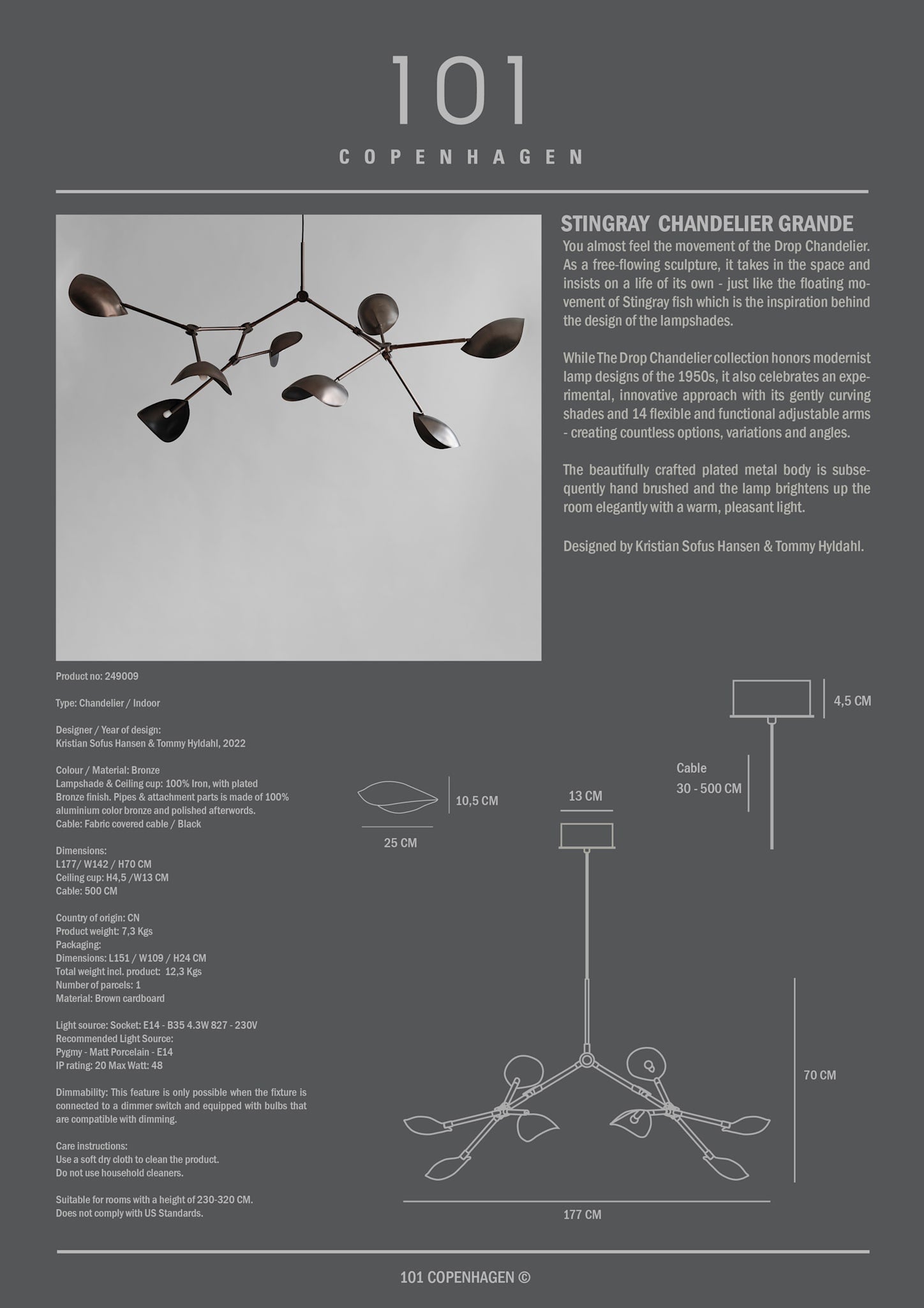 101 Copenhagen - Stingray Chandelier, Grande - Bronze (5m) - Chandelier