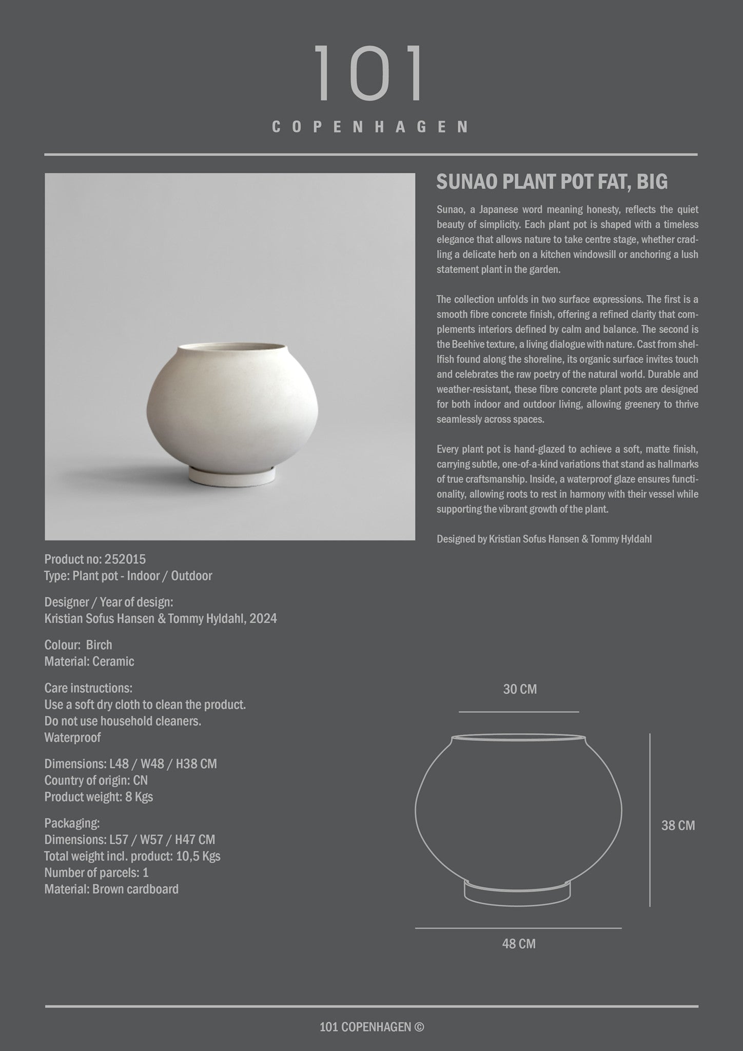 101 Copenhagen - Sunao Plant Pot Fat, Big - Birch - Outdoor