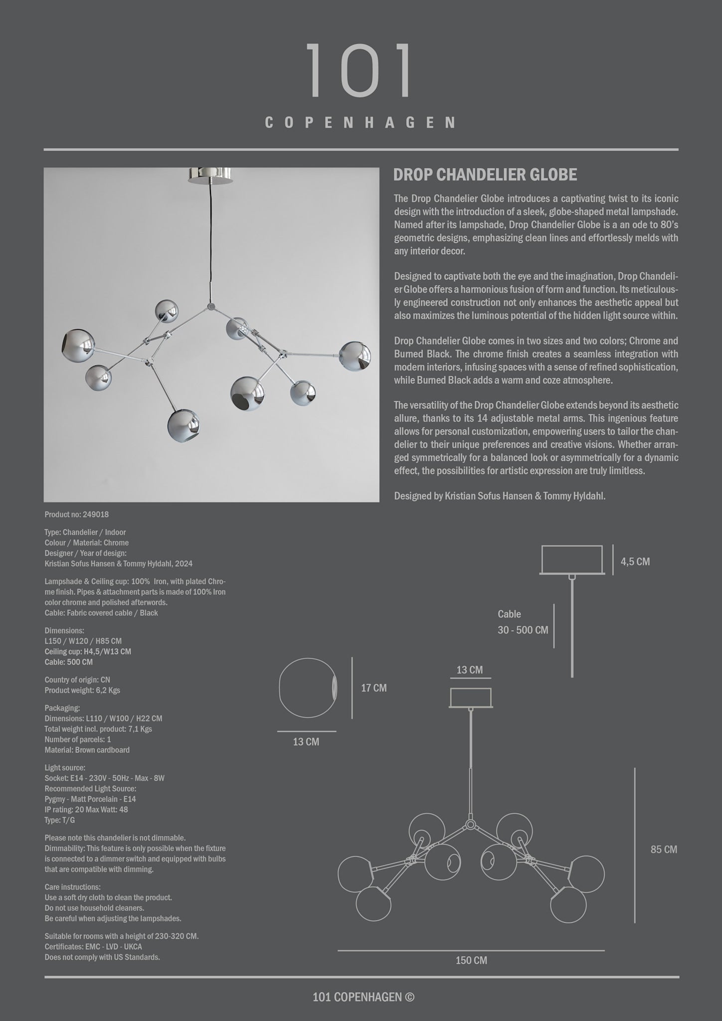 101 Copenhagen - Drop Chandelier Globe - Chrome (5m) - Chandelier