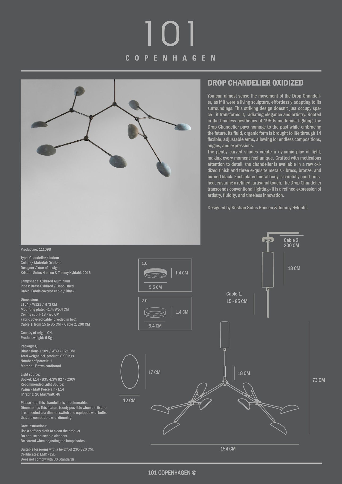 101 Copenhagen - Drop Chandelier - Oxidized - Chandelier