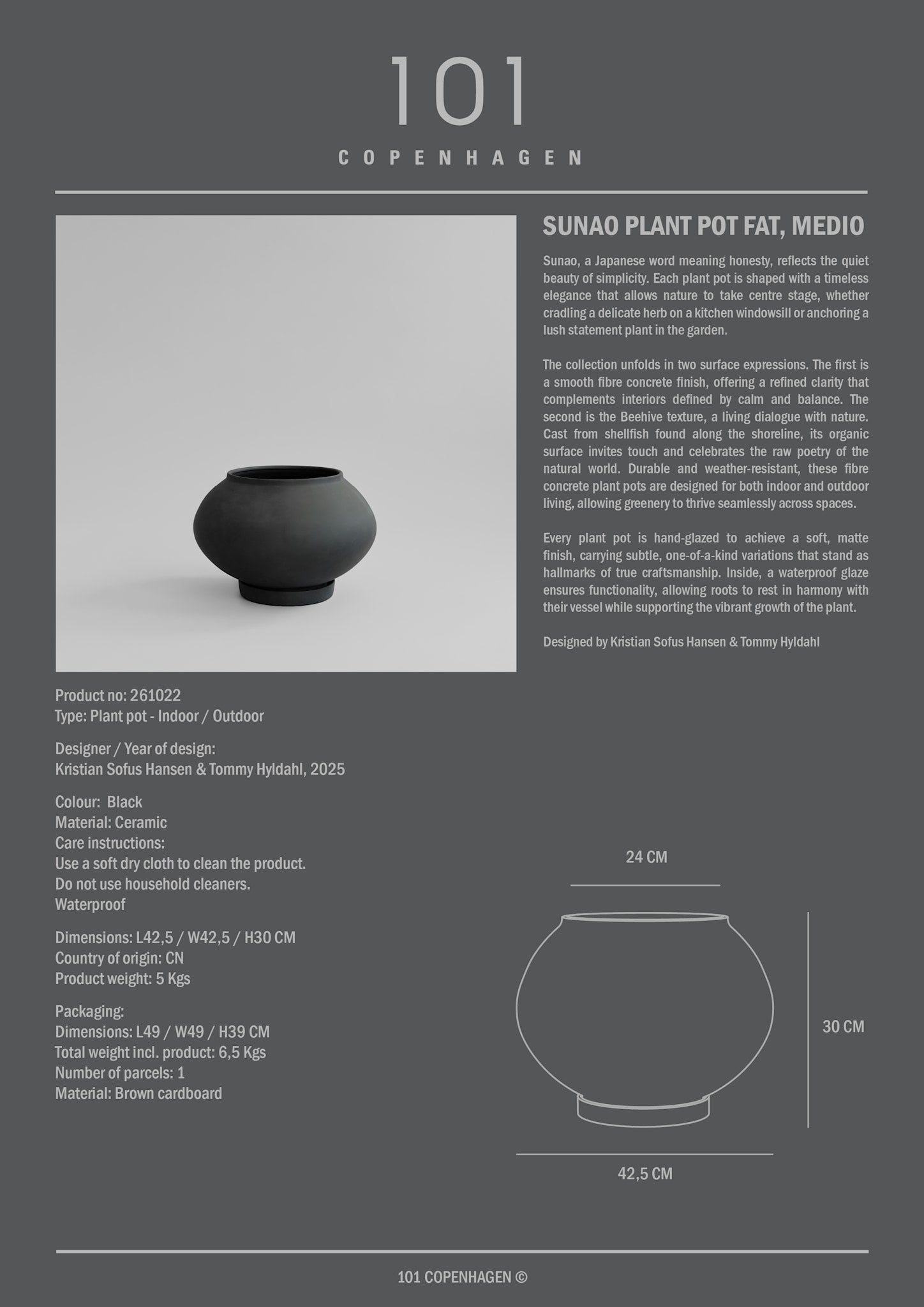 Technical Details: Sunao Plant Pot Fat, Medio - Black